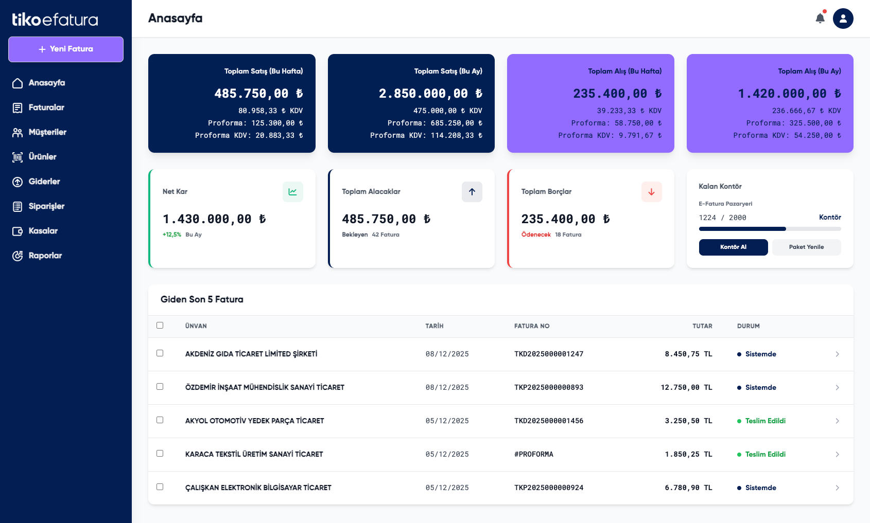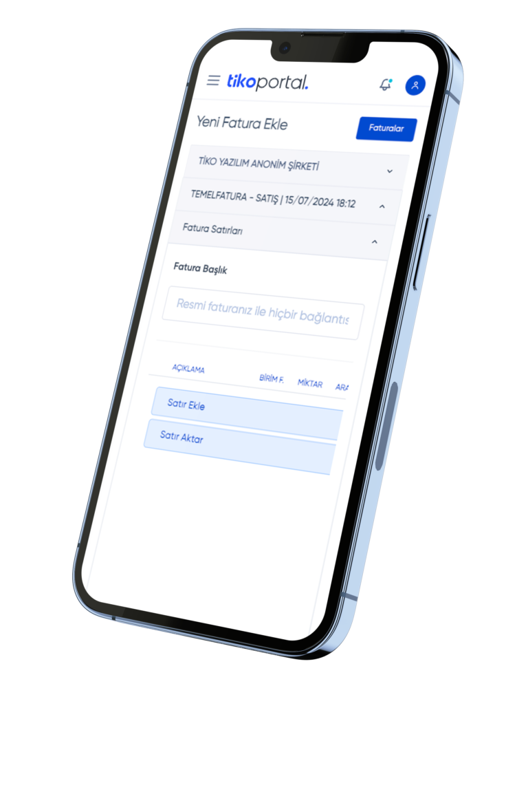 Tiko E-Fatura Portal ile fatura kesme işlemleriniz artık çok daha kolay ve hızlı.